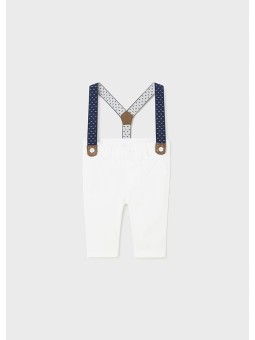 Spodnie dla noworodka. Pas z elastyczną gumką i guzikiem. Z tyłu praktyczne kieszenie, z przodu imitacja kieszeni.