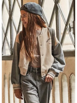 MAYORAL BLUZA DLA DZIEWCZYNKI ROZPINANA BOMBERKA KREM SZARY HAFT 7428/35