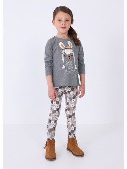 MAYORAL KOMPLET DLA DZIEWCZYNKI KOSZULKA NA DŁUGI RĘKAW SZARA LEGINSY WZORY 4795/53