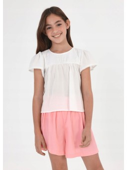 * Bluzka z krótkim rękawem dla dziewczyny. Delikatna i elastyczna bawełna. Model gładki.