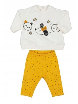 Zestaw ubranek dla noworodka dziewczynki składający się z kompletu koszulki i pasujących długich spodni.