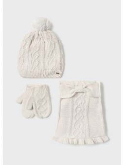 MAYORAL KOMPLET CZAPKA SZAL RĘKAWICZKI KREM 10016/44
