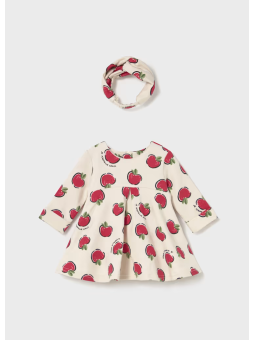 Sukienka dla noworodka. Okrągły dekolt. Zapięcie z tyłu na niewidoczny zamek błyskawiczny. Model z nadrukiem.