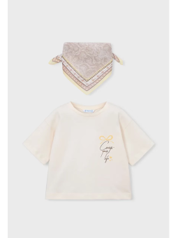 MAYORAL KOSZULKA NA KRÓTKI RĘKAW DLA DZIEWCZYNKI KREM CHUSTKA 3009/88