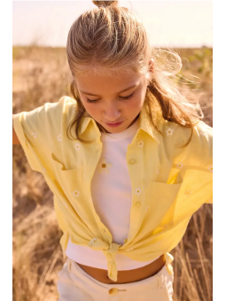 Koszula dziecięca z kolekcji Mayoral wykonana z cienkiej, nieelastycznej tkaniny. Do modelu dołączony top.