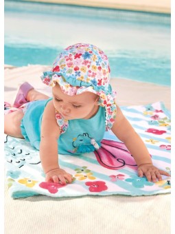 MAYORAL NEWBORN KOMPLET LETNI KĄPIELOWY DLA DZIEWCZYNKI KOSZULKA  MAJTKI PLUS KAPELUSZ 1692