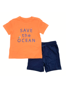 Zestaw ubranek dla noworodka chłopca 0 do 18 miesięcy składający się z koszulki z krótkim rękawem i pasujących szortów. Delikatna i elastyczna bawełna.