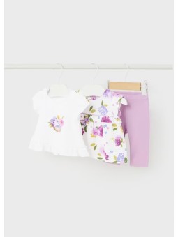 MAYORAL KOMPLET LETNI DLA DZIEWCZYNKI DWIE KOSZULKI PLUS LEGINSY KWIATKI FIOLET 1791/11