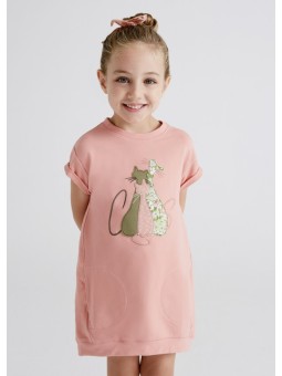 Sukienka z długim rękawem dla dziewczynki. Ozdoby: grafika na przodzie. Motyw w paski, kieszonki po bokach i wiązanie w pasie .