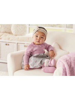 Ubranko ECOFRIENDS, zawiera bawełnę przetworzoną. Sukienka dla noworodka dziewczynki. Zapięcie na plecach. Nadruk w kwiatki