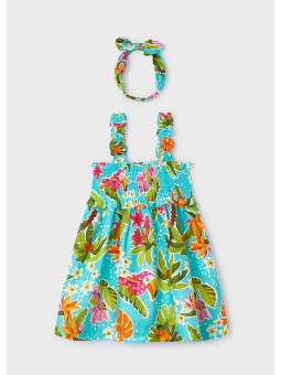 Ubranko ECOFRIENDS, zawiera bawełnę zrównoważoną. Sukienka na ramiączkach dla dziewczynki . Projekt z nadrukiem .W komplecie opaska