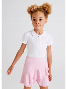 Polo z krótkim rękawem dla dziewczynki z detalami w pasujących kolorach. Kołnierzyk polo z brokatowymi detalami w pasującym odcieniu kolorystycznym. Zapięcie na guziki. Delikatna i elastyczna bawełna.