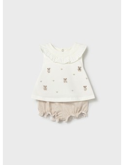 Komplet dwóch artykułów składający się z koszulki ze spodniami typu szorty dla niemowlęcia.