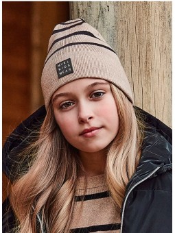 Czapka dla dziewczynki wykonana z ciepłych i elastycznych materiałów, które gwarantują idealne dopasowanie do głowy, maksymalny komfort i ochronę przed zimnem. Wzór w paski.