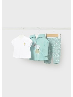 MAYORAL NEWBORN KOMPLET BLUZA ROZPINNA Z KAPTUREM KOSZULKA SPODNIE W SERDUSZKA 1826/70