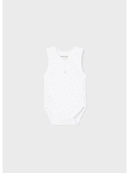 Ubranko ECOFRIENDS 100% zrównoważona bawełna. Body bez rękawków dla noworodka. Poprzeczny kołnierz i pełne rozcięcie z boku z zapięciem na zatrzaski ułatwiają zakładanie. W większych rozmiarach (od 4-6 do 18 miesięcy) zapięcie z boku jest zastąpione przez zapięcie na ramieniu.