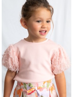 MAYORAL BLUZKA T-SHIRT KOSZULKA NA KRÓTKI RĘKAW DLA DZIEWCZYNKI TIULOWE RĘKAWY 3001/47