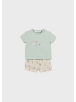Koszulka z krótkim rękawem dla noworodka. Okrągły dekolt. Zapięcie na zatrzaski na ramieniu ułatwiające zakładanie ubrania. Ozdoby: haft na przodzie ubranka