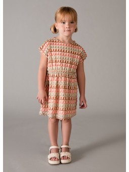 Sukienka dziecięca z kolekcji Mayoral wykonana z wzorzystej dzianiny. Materiał o optymalnej elastyczności gwarantuje pełną swobodę ruchów.