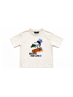 Ubranko ECOFRIENDS, zawiera bawełnę zrównoważoną. Koszulka z krótkim rękawem dla chłopca. Okrągły dekolt. Projekt z aplikacją.
