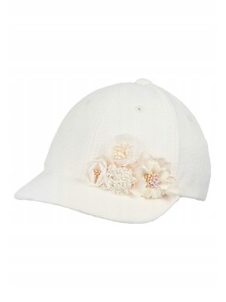 JAMIKS CZAPKA Z DASZKIEM DLA DZIEWCZYNKI KREMOWA Z OZDOBNYMI KWIATKAMI  ODETTE