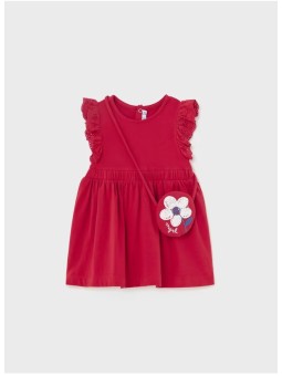 Sukienka dla dziewczynki . Proste wycięcie pod szyją. Artykuł wykonany ze 100% bawełny. Model gładki .Torebka w komplecie