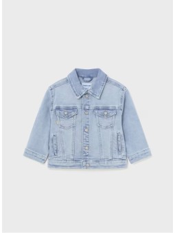Ubranko ECOFRIENDS, zawiera bawełnę zrównoważoną. Kurtka z długim rękawem dla chłopca . Zapięcie z przodu na guziki. Nowoczesna tkanina jeansowa z efektem sprania .Kieszenie