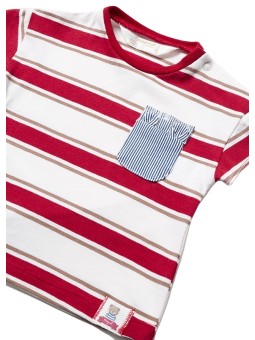 Koszulka z krótkim rękawem dla niemowlęcia chłopca . Zapięcie na zatrzaski na ramieniu, które ułatwiają założenie ubranka. Delikatna i elastyczna bawełna .Motyw w paski