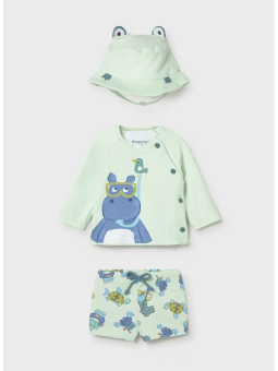 Komplet kąpielowy z kolekcji Mayoral Newborn. Model wykonany z elastycznego materiału.