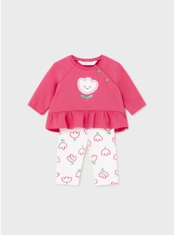Zestaw ubranek dla noworodka dziewczynki składający się z kompletu koszulki i pasujących długich spodni.