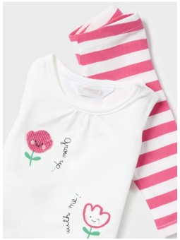 Zestaw ubranek dla noworodka dziewczynki składający się z kompletu koszulki i pasujących długich spodni.