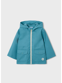 Kurtka przeciwwiatrowa z długim rękawem dla chłopca. Kołnierz z kapturem. Zapięcie na środku na zamek błyskawiczny. Z przodu funkcjonalne kieszenie.