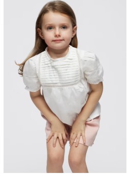 Ubranko ECOFRIENDS, zawiera bawełnę zrównoważoną. Koszulka z krótkim rękawem dla dziewczynki. Okrągły dekolt. Model gładki
