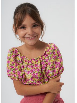Top z nadrukiem w kwiatki na krótki rękaw dla dziewczyny.