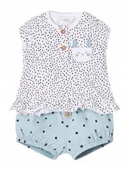 MAYORAL NEWBORN KOMPLET LETNI DLA DZIEWCZYNKI BLUZKA W PLAMKI PLUS SZORTY MIĘTOWE W KROPKI 1624 /91