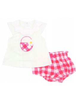 Komplet dwóch artykułów składający się z koszulki ze spodniami typu szorty dla niemowlęcia dziewczynki.
