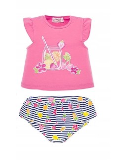 Zestaw ubranek dla noworodka dziewczynki składający się z koszulki z krótkim rękawem i pasujących szortów. Delikatna i elastyczna bawełna.