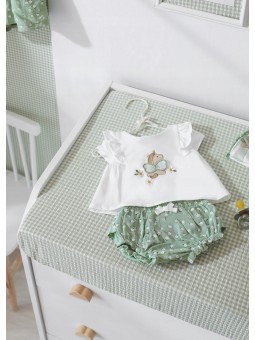 Zestaw ubranek dla noworodka dziewczynki składający się z koszulki z krótkim rękawem i pasujących szortów. Delikatna i elastyczna bawełna.