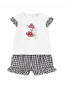 Komplet dwóch artykułów składający się z koszulki ze spodniami typu szorty dla niemowlęcia dziewczynki.