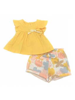 Komplet dwóch artykułów składający się z koszulki ze spodniami typu szorty dla niemowlęcia dziewczynki.