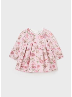 Sukienka z długim rękawem dla dziewczynki . Okrągły dekolt. Ozdoby : nadruk kwiatowy.
