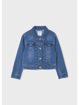 Kurtka z długim rękawem dla dziewczynki z mankietem zapinanym na guzik. Z przodu zapięcie na zatrzaski. Wygodny i wytrzymały materiał z serży. Ozdobna falbana w dolnej części. Ozdoby: elementy ozdobnej plecionki.