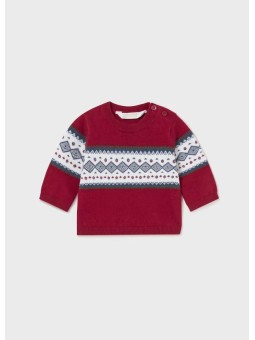 Sweter z długim rękawem dla noworodka. Zapięcie na guziki na ramieniu. Żakardowy wzór.