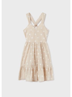 Sukienka na ramiączkach z wycięciem na plecach z detalami z falbany dla dziewczynki. Lekki i elastyczny materiał zapewniający codzienną wygodę