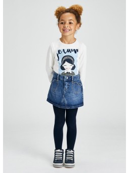 Krótka spódniczka dla dziewczynki od 2 do 9 lat. Pas z regulowaną gumą i zapięciem na suwak i guzik. Z przodu zarówno kieszenie funkcjonalne, jak i imitacja kieszeni.