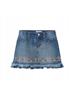 Krótka spódniczka dla dziewczynki od 2 do 9 lat. Pas z regulowaną gumą i zapięciem na suwak i guzik. Z przodu zarówno kieszenie funkcjonalne, jak i imitacja kieszeni.