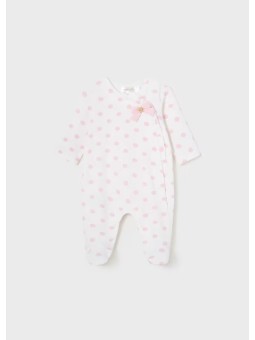 Piżama z długim rękawem dla noworodka do 18 miesięcy. Śpioszki ze stópkami. Okrągły dekolt . Zapięcie na zatrzaski w kroku.