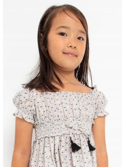 Sukienka z krótkim rękawem z detalami z falbany dla dziewczynki od 2 do 9 lat. Okrągły dekolt. Lekki i elastyczny materiał zapewniający codzienną wygodę. Nadruk kwiatowy