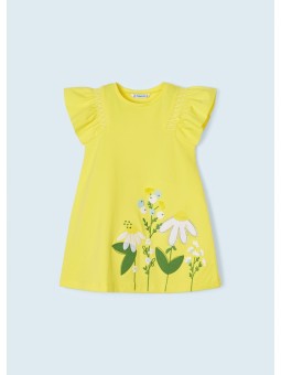 Ubranko ECOFRIENDS, zawiera bawełnę zrównoważoną. Sukienka na krótki rękaw dla dziewczynki . Projekt z nadrukiem.