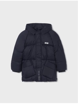 Kurtka z długim rękawem ze ściągaczami dla chłopca . Kołnierz z piersią. Zapięcie w środku na zamku zamkniętym. Kieszenie po bokach.